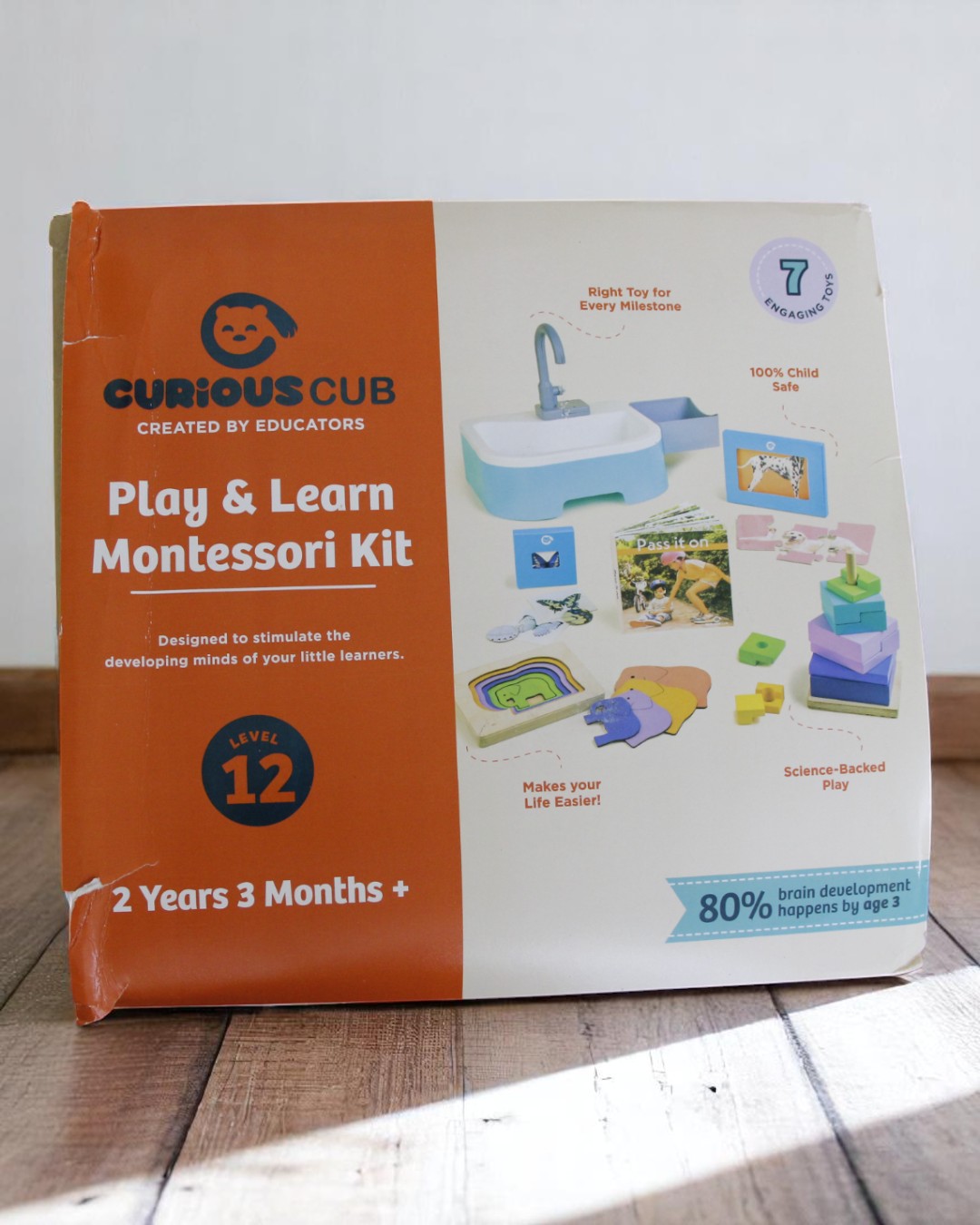 Let us explore the delightful offerings of Box 12, thoughtfully designed for children aged 2.5 Years and above. This stage is a whirlwind of discovery, and each item in the box is crafted to nurture specific developmental skills in an engaging and enjoyable manner. Running Water Sink Skills Developed: Practical Life Skills, Fine Motor Skills, Cause and Effect Understanding Engaging with the running water sink enhances practical life skills as your child learns to operate the tap and manage water flow. This activity also promotes fine motor skills through hand movements and fosters cause and effect understanding, aiding in cognitive development. Logical Stacker Skills Developed: Problem Solving, Spatial Awareness, Hand-Eye Coordination The logical stacker encourages your child to explore problem solving by matching pairs and placing them in the correct orientation. This activity also fosters spatial awareness and enhances hand-eye coordination, aiding in cognitive development. Elephant Nesting Puzzle Skills Developed: Size Discrimination, Fine Motor Skills, Cognitive Development Solving the elephant nesting puzzle boosts size discrimination as your child identifies and arranges pieces by size. It also improves fine motor skills through manipulation of the pieces and promotes cognitive development, aiding in overall growth. 3 Piece Puzzle Skills Developed: Problem Solving, Visual Discrimination, Mathematical Ability Engaging with the 3-piece puzzle enhances problem solving as your child determines how pieces fit together. This activity also fosters visual discrimination and promotes mathematical ability, aiding in cognitive development. Butterfly Wing Match Skills Developed: Visual Discrimination, Attention to Detail, Cognitive Development The butterfly wing match game enhances visual discrimination as your child matches butterfly wings based on patterns. It also fosters attention to detail and promotes cognitive development, aiding in overall growth. ‘Pass It On’ Board Book Skills Developed: Language Development, Emotional Intelligence, Social Skills Reading the ‘Pass It On’ board book together supports language development by introducing new vocabulary and sentence structures. The story also fosters emotional intelligence and enhances social skills as your child learns about kindness and empathy. Parent’s Handbook Skills Developed: Guided Learning, Parental Engagement This comprehensive guide offers insights into each toy’s purpose and provides activity suggestions, facilitating guided learning and enhancing parental engagement in your child’s developmental journey.